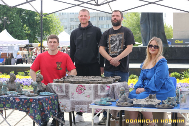 Ветеран із Луцька Андрій Бугайов теж на ярмарку вперше. Він служив із 2020 року в складі 80-ї ОДШБр. У серпні 2024 року отримав поранення, а після повернення до цивільного життя приєднався до волонтерського фонду. Разом із товаришами почав робити гіпсові вироби. Спочатку для збору коштів. Пізніше виникла ідея заснувати власну справу.