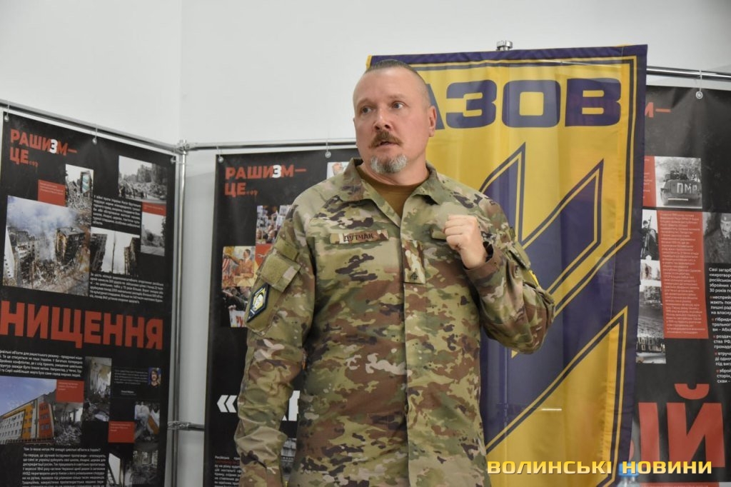 «Незламні українські повстанці». Азовець Доцент у Луцьку провів лекцію, яку читав у бараках в Оленівці