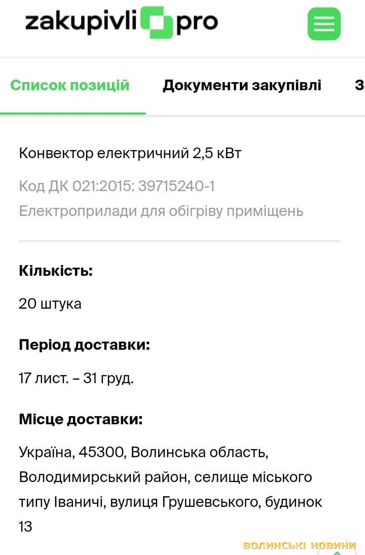 Іваничівська селищна рада закупила 20 електричних конвекторів. Про це стало відомо з тендерної документації. З їх допомогою керівництво громади намагається хоч якось обігріти місцеві комунальні заклади, зокрема будівлю селищної ради та дитячий садок.