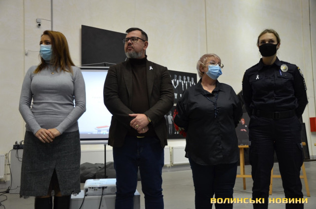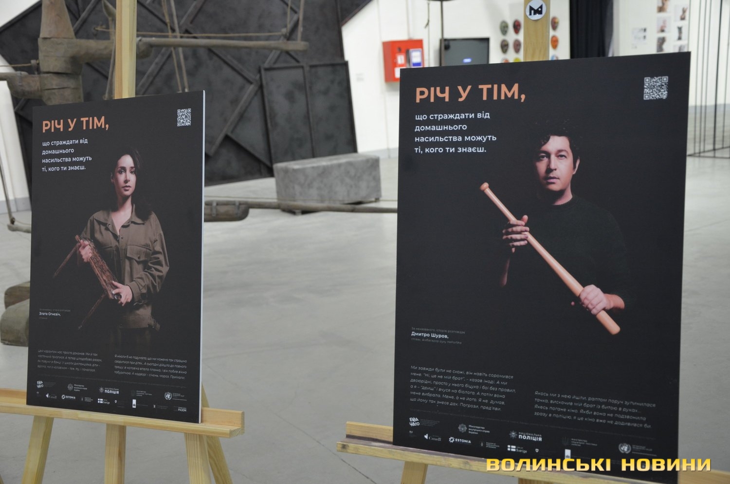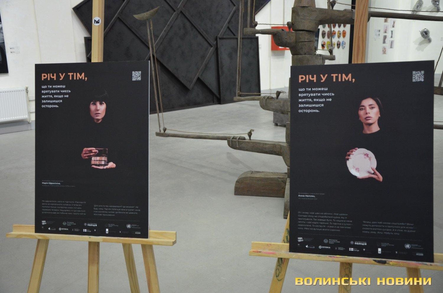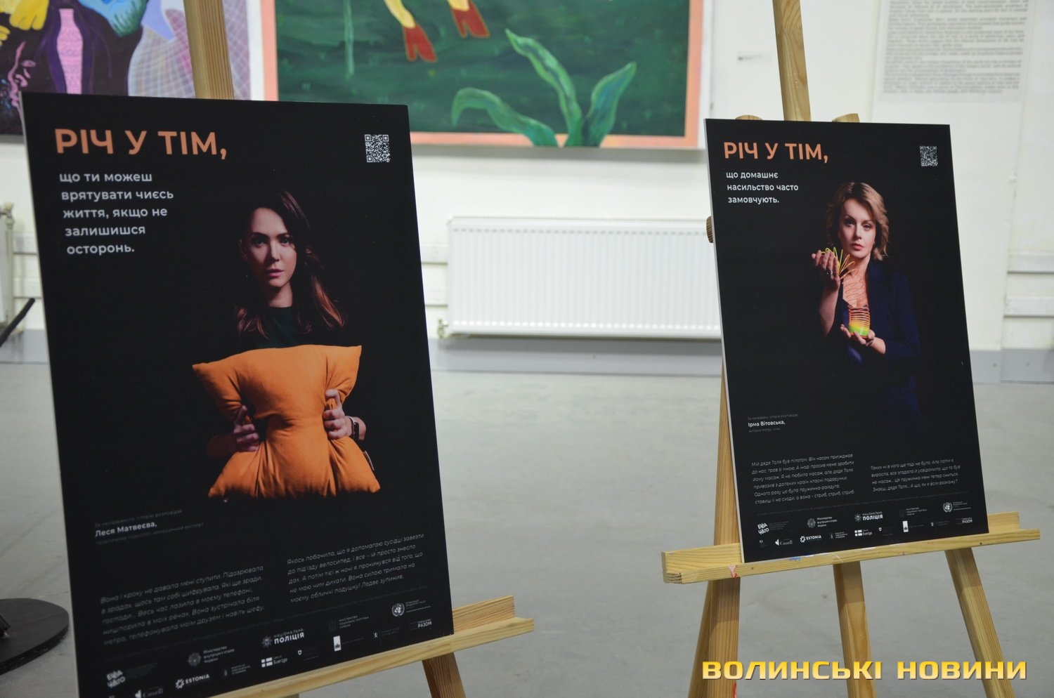 Директор Волинського обласного центру зайнятості Роман Романюк звернув увагу, що насильство може бути не тільки фізичним, а й психологічним, фінансовим, трудовим тощо. А депутатка Луцької міської ради Алла Доманська інформувала, що вчора на сесії депутати звернулися до Верховної Ради України, аби та ратифікувала Конвенцію Ради Європи про запобігання насильству щодо жінок і домашньому насильству та боротьбу із цими явищами. Своєю чергою, її колега Алла Надточій розказала, що міськрада належну увагу приділяє питанню протидії домашньому насильству, і запевнила, що в разі потреби допомогу можна знайти на будь-якому рівні.«Домашнє насильство – це щоденний, тихий злочин, тому що я не пам’ятаю жодного дня в Україні, коли не було би звернень щодо вчинення домашнього насильства. Чому тихий? Тому що зазвичай він вчиняється без свідків, наодинці. Це – один зі стримуючих факторів для постраждалих, аби звернутися по допомогу, тому що свідків немає і ніхто не повірить. Але безвихідних ситуацій немає», – сказав правозахисник Віктор Вальчук, який уже 21 рік працює з проблемою домашнього насильства.Усі, хто зібрався в залі Музею сучасного українського мистецтва Корсаків, могли оглянути виставку «Річ у тім...» На кількох постерах відомі українці тримають у руках предмети, пов’язані з домашнім насильством, і розповідають реальні трагічні випадки.До того ж, глядачі побачили кілька соціальних відеороликів і могли ознайомитися з друкованою продукцією.Також увазі присутніх було представлено арт-інсталяцію «Їх більше немає…», присвячену історіям жертв домашнього насильства. Це виставка взуття загиблих від рук своїх близьких. Окрім речей дорослих, тут багато й дитячого взуття.