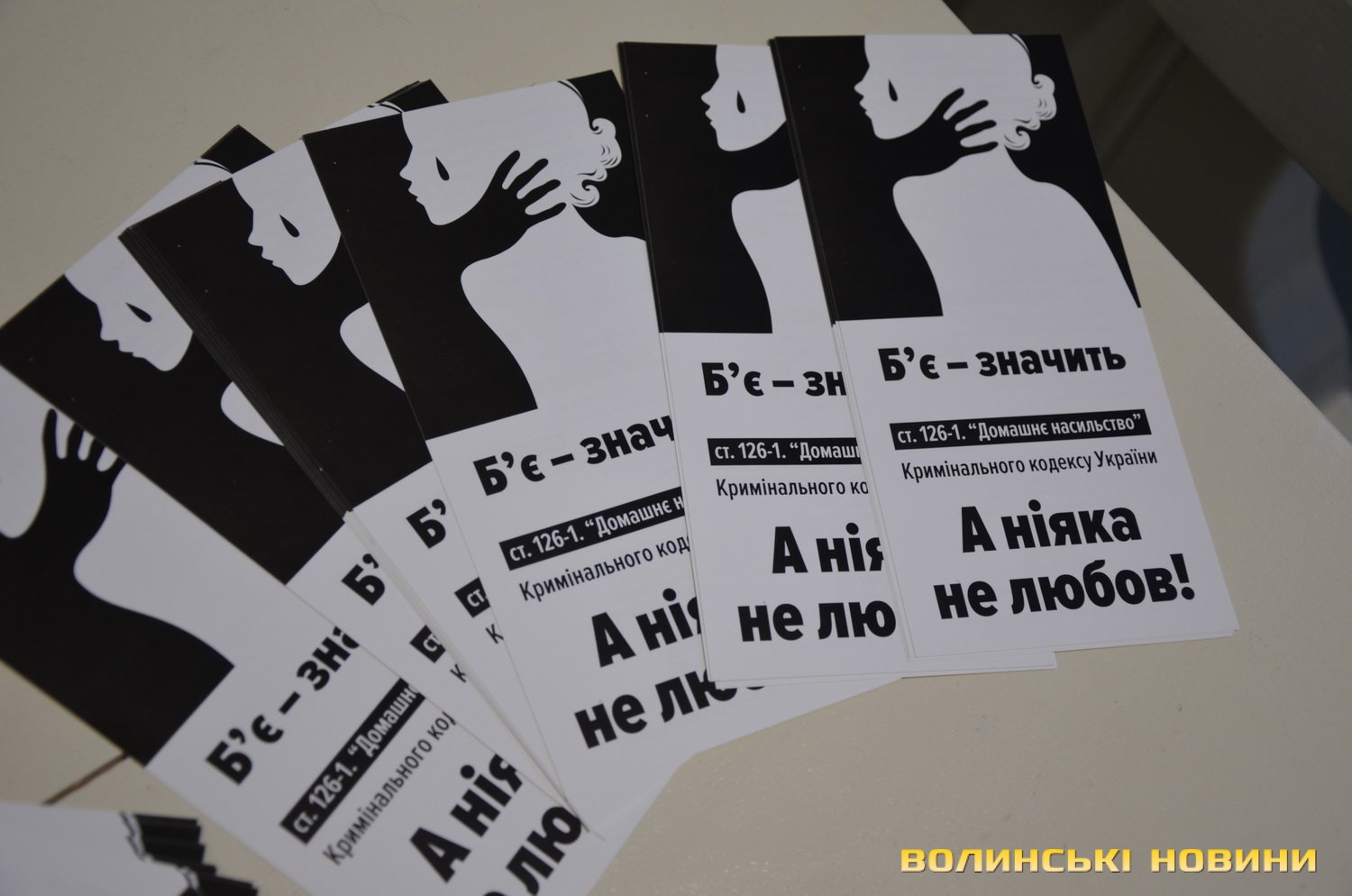 «Б’є – значить стаття 126-1 Кримінального кодексу України «Домашнє насильство», а ніяка не любов!» Аби ще раз привернути увагу людей до вкрай важливої проблеми насильства та закликати постраждалих не залишатися вдома наодинці зі своїм болем, у Луцьку організували інформаційну кампанію «Я не боюсь сказати».