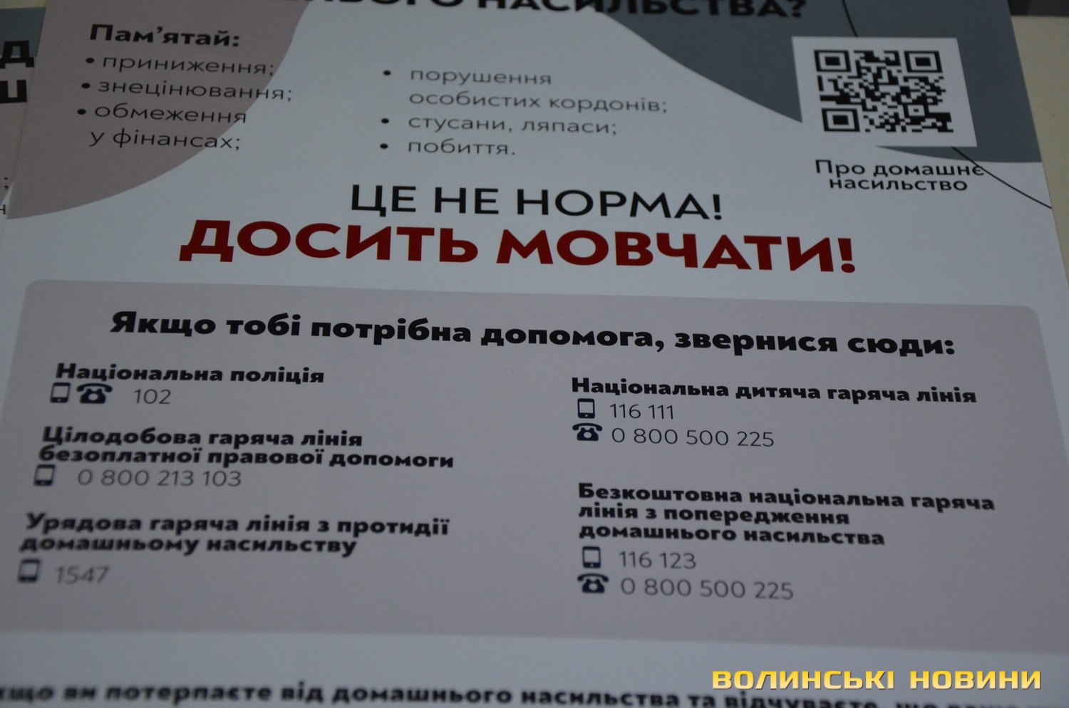 «На жаль, маємо жахливу статистику – понад 200 тисяч звернень у зв’язку з випадками домашнього насильства щороку до поліції, більш як 180 тисяч із яких подають жінки. І ми можемо бути певними, що ці цифри – лише маленька частина людей, які не бояться про це говорити. Тому проблема є надзвичайно актуальною. У 2020 році було засуджено за домашнє насильство 970 кривдників. Ця цифра в чотири рази більша, ніж у 2019 році», – додав директор департаменту сім’ї, молоді та спорту Луцької міської Володимир Захожий.Заступник керівника управління превентивної діяльності в області Валерій Чоботан зауважив, що наразі в області нараховується близько 10 тисяч звернень щодо випадків домашнього насильства. Також понад дві тисячі кривдників було поставлено на облік.