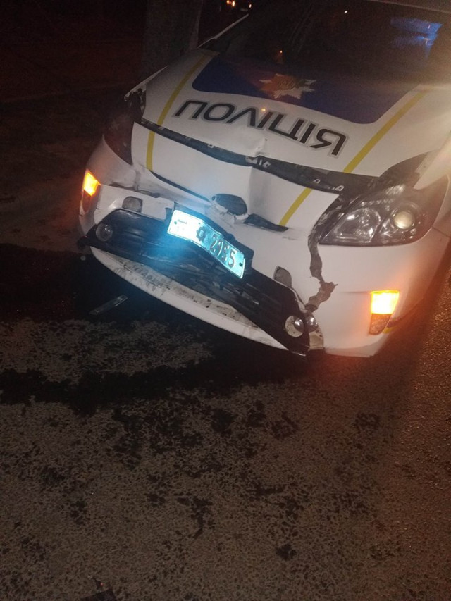 Користувач Петро Козлюк опублікував у мережі фото розбитих автівок: На фото видно, що транспортні засоби отримали значні механічні пошкодження, особливо - патрульна автівка. У Prius - розбита передня частина.