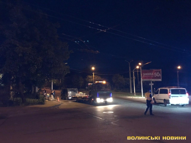 Нічна ДТП з потерпілим у Луцьку: зіткнулися бус і легковик. Фото