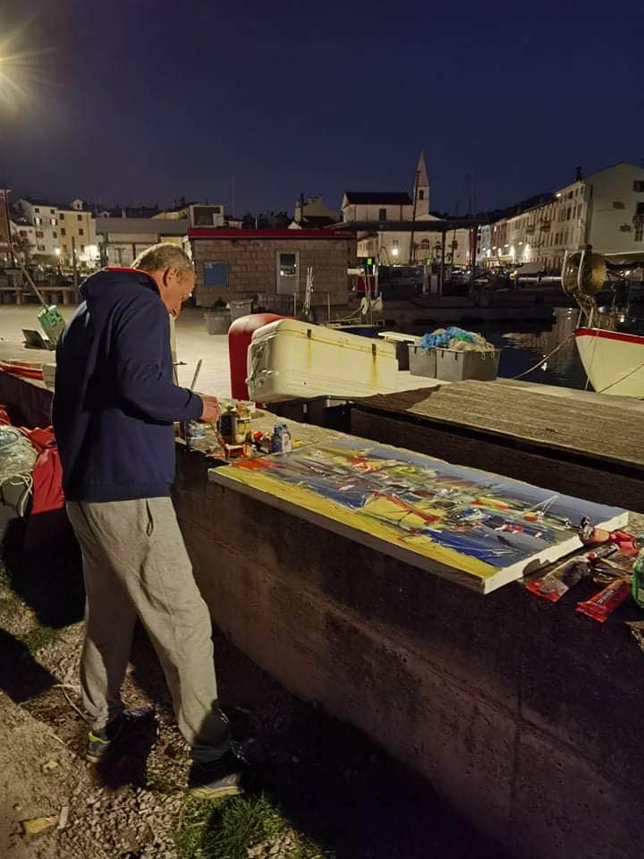 Так сталося, що весною художник Едуард Бєльський поїхав до Венеції, щоночі писав етюди і фіксував на своїй фейсбук-сторінці творчий процес. Часом він доповнював чи переробляв роботи. Відразу показував зміни в етюдах на світлинах в життєписі, і його «Венеційські хроніки» жваво коментували, обговорювали читачі. Окрім того, дистанційно він домовлявся про показ цих пейзажів у мистецьких галереях Києва і Луцька.Ось така передісторія виставки «Добраніч» – а саме так перекладається зі словенської мови її назва – яка триває зараз в художньому салоні Нижньої зали Галереї мистецтв Волинської організації Національної спілки художників України. Її автор – Едуард Бєльський, художник родом з Волині, один із найвідоміших в Європі та світі українських митців. Це перша персональна виставка в оновлених стінах художнього салону спілки, де експонуються виключно твори регіональних майстрів пензля.На короткій неформальній презентації у дружньому колі автор розповів про мандрівку до Італії, а його колега художник Сергій Корсай поділився тим, як спостерігав за створенням венеційських пейзажів онлайн.Едуард Бєльський проживає з родиною в Словенії (тому назва виставки саме словенською мовою), і подорожує Європою в пошуках локацій для натхнення, спілкується з людьми різних культур – глядачами, які спостерігають за його роботою, і тими, які потім приходять на його виставки. І трапляється так, що це жителі різних країн і етносів. Окрім венеційських пейзажів, до експозиції луцької виставки увійшли також тематичні пейзажі різних років, які автор писав у кількох мальовничих європейських куточках.І як же художнику працювалося вночі? Під одним із відео процесу створення етюду він зізнається: «Перевага нічного малювання – це як нічне кохання, коли нічого не видно, і тільки зранку ти бачиш, що сталося. Інколи буває по-дитячому соромно, а інколи, прокинувшись, ти кажеш ВАУ».
