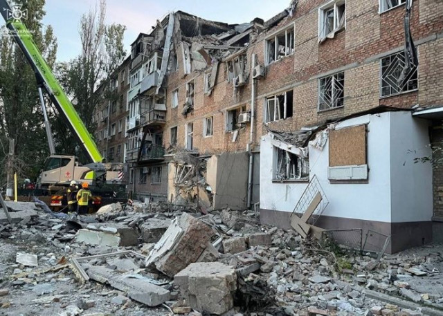 «Відомо про влучання у низку цивільних об’єктів. Зокрема, у п’ятиповерховий житловий будинок. В результаті два верхні поверхи зруйновані вщент, решта – під завалами. Попередньо, дві людини отримали поранення. Серед поранених 11-річний хлопчик, якого дістали із під завалів», – написав Кім.