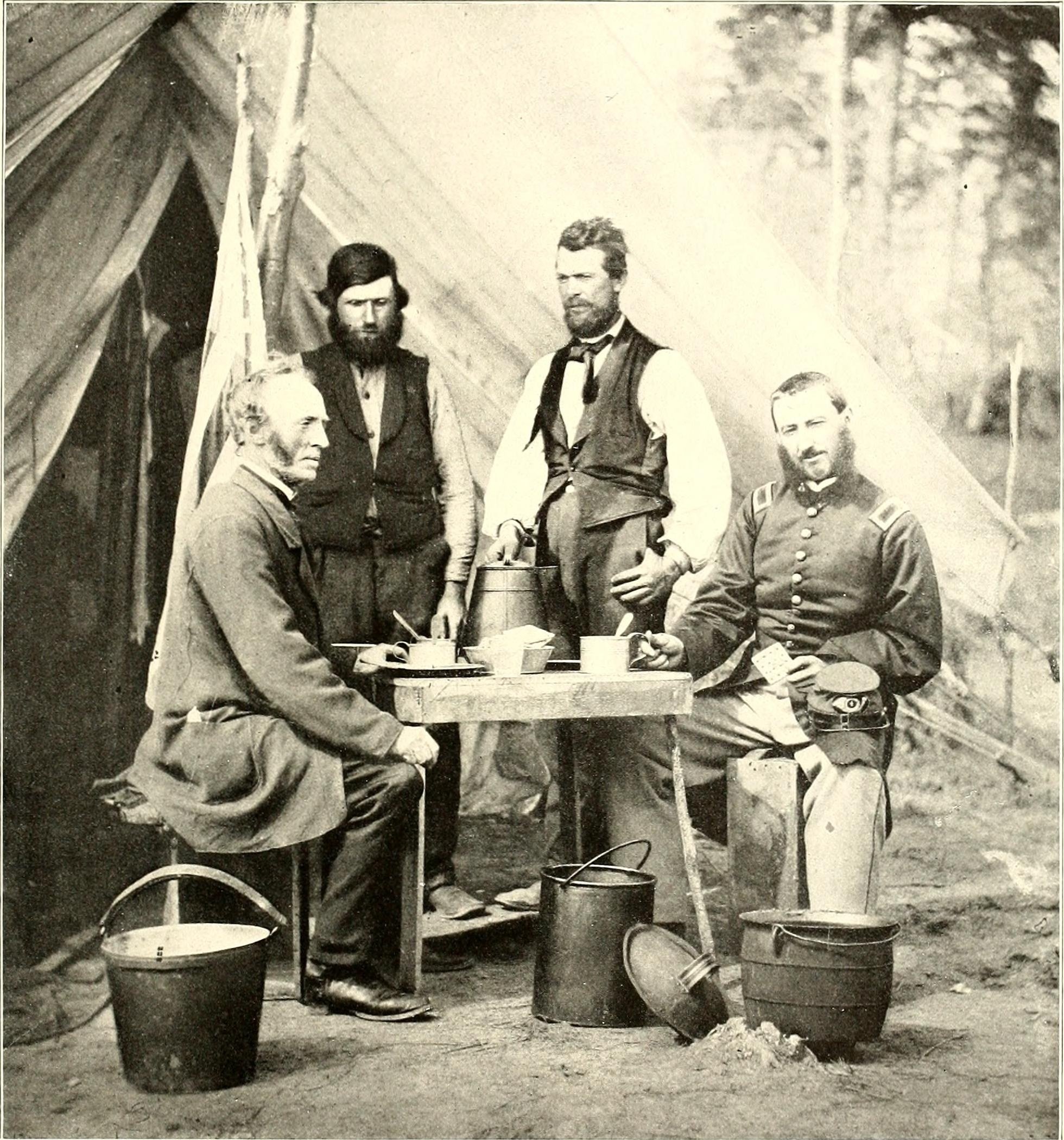 Солдати Союзу північних штатів з чашками кави під час Громадянської війни в США