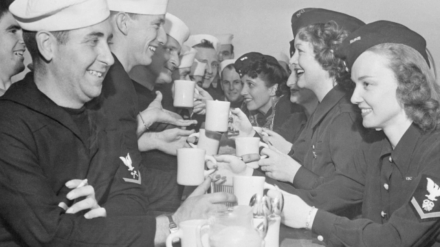 Під час Другої світової війни кава також лишалась постійним супутником солдатів. Американський військовий споживав близько п’ятнадцяти кілограмів кави на рік. На зміну іменній «чашці Джорджа» прийшла «чашка Джо». За однією з легенд, її так назвали на честь американського міністра ВМФ Джозефуса Деніелса, який ще під час Першої світової повністю заборонив алкоголь на флоті. Тож найміцнішим дозволеним напоєм для військових моряків стала кава.Кавові технології теж не стояли на місці. Якщо спадщиною Першої світової стала розчинна кава, то Другої світової – кава в таблетках. До армії і флоту союзників постачали таблетки, кожна містила вітаміни групи В і три грами кофеїну. Для порівняння, у чашці добряче міцної кави міститься близько 100 міліграмів кофеїну. А ще, за легендою, під час Другої світової з’явилось американо – коли американські солдати в Італії почали розбавляти водою місцевий еспресо.Американські моряки пʼють каву під час Другої світової війни, 1942 рік