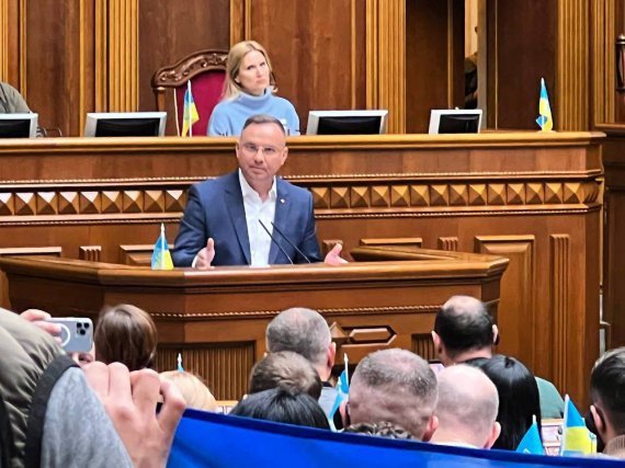 Дуда став першим зі світових лідерів, які виступили в стінах парламенту з початку повномасштабного вторгнення Росії в Україну.