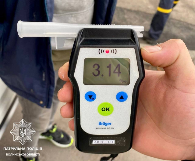 Під час перевірки документів поліцейські з’ясували, що чоловік ніколи не отримував посвідчення водія та виявили у нього ознаки алкогольного сп’яніння. Прилад Drager показав результат – 3,14 проміле, що перевищує норму у 16 разів.