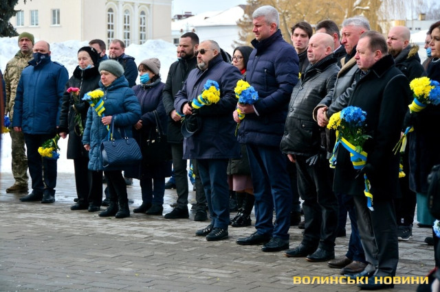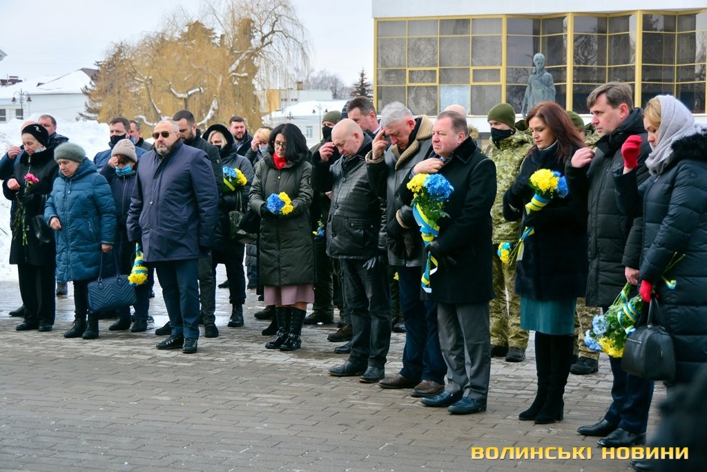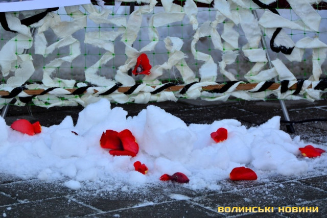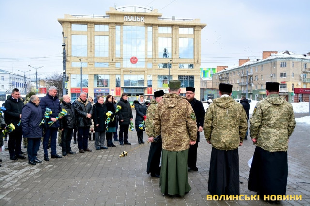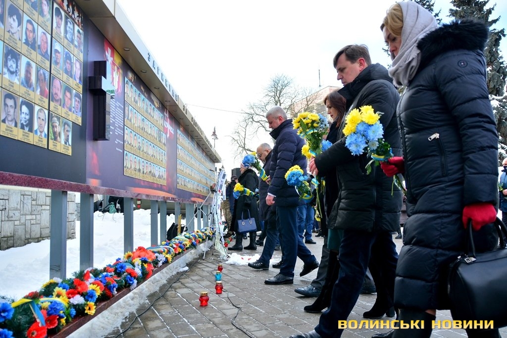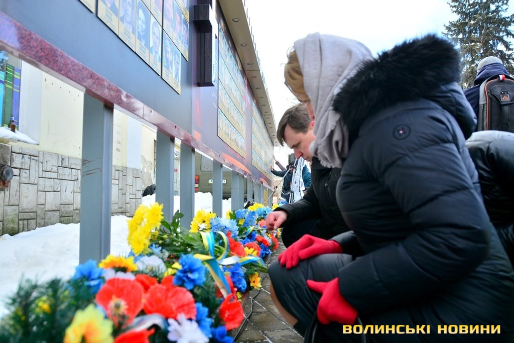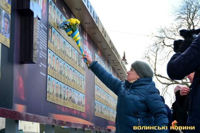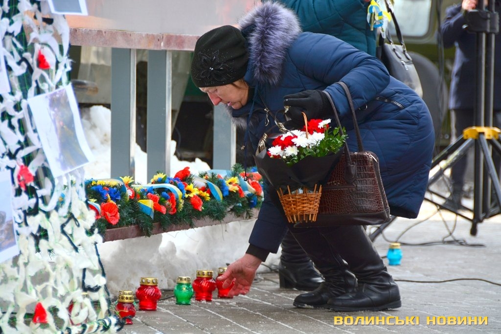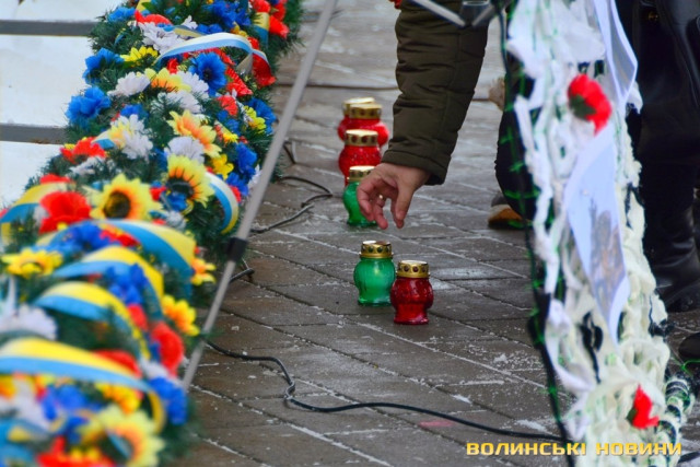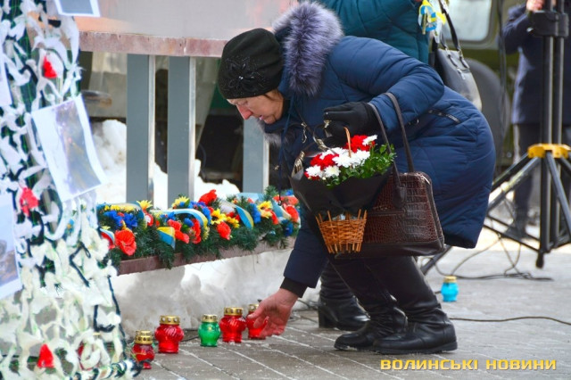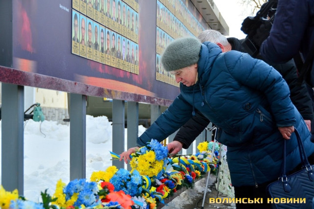 Панахида та покладання квітів відбулися біля пам’ятного фотостенду «Герої Небесної Сотні – Загинули за єдність України» 18 лютого. Організували захід представниці волинської філії ВГО "Об'єднання дружин і матерів учасників АТО".