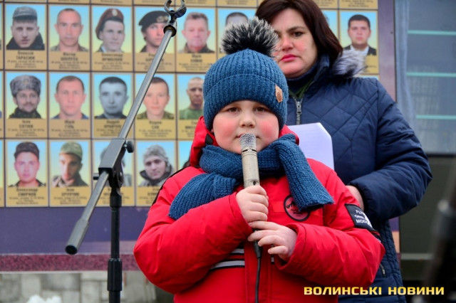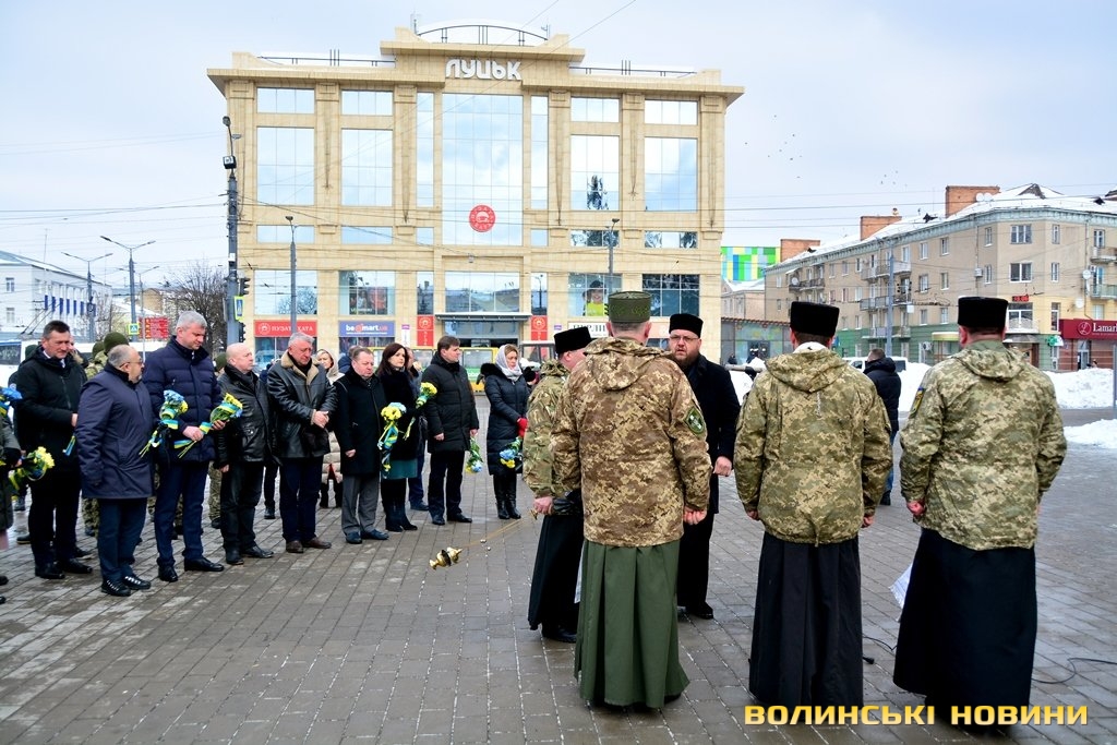 Вшанувати загиблих воїнів та помолитися за спасіння їхніх душ прийшли представники міської, обласної влади та різних установ, а також духовенство та небайдужі лучани.Впродовж заходу наголошували, що головне завдання – пам’ятати загиблих хлопців та добиватися покарання винних у загибелі українських бійців.Син загиблого воїна Максима Ляшука Матвій прочитав вірш Олександра Олеся «Живи, Україно, живи для краси», присвятивши його своєму батькові-герою та усім воїнам, які захищали Україну.Заступник голови Волинської обласної ради Григорій Пустовіт відзначив, що сьогодні зібралися, аби вшанувати пам'ять тих, хто піднявся у небо під Дебальцевим та Іловайськом, а також загиблих цього дня на Майдані Незалежності в 2014 році.