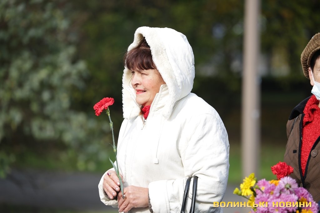 «Сьогодні для мене дуже великий день. Я – донька ветерана. Мій тато, Дмитро Ілліч Кожин, Царство йому Небесне, пройшов всю війну. Народився у 1919 році. У 1939 році він пішов до армії, і якраз перед його «дембелем» розпочалася Друга світова. Тож мого тата одразу зі строкової служби забрали воювати. Він дійшов до Берлінуа. Татка нагородили відзнаками та орденами, зокрема, він мав медаль «За відвагу», орден «Червоної Зірки» тощо. Мій тато – мій герой. Я цим пишаюсь, і завжди пам’ятаю про цей день, тим самим вшановуючи його пам'ять. Ніколи не можна про це забувати, щоб воно не повторювалося знову і знов. Ми повинні говорити про це нашим дітям та онукам», - зауважила лучанка.Разом із нею покласти квіти до пам’ятника «Поранений солдат» прийшла й донька ветерана Другої світової війни Наталія Некрахова. Вона розповіла, що її батька Василь Григоровича Некрахова, 1918-го року народження, у 1941 році кинули в перший бій у складі морської піхоти, де він отримав поранення.«З уламком в голові він прожив майже 96 років. Після війни займав посаду директора залізничної школи у Луцьку, а потім – вечірньої. Все життя тато був дуже активний. Я дуже пишаюся тим, що він у мене такий був, і що воював за Україну. Якби не ті відважні воїни, можливо, України б уже не було. Ми не були б вільними, не могли б жити і радіти. Я вважаю, що і сьогодні потрібно зробити все для того, аби Україна існувала під мирним небом», - наголосила Наталія Некрахова.