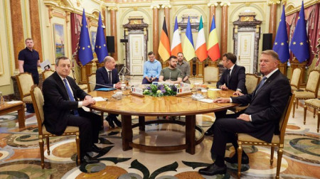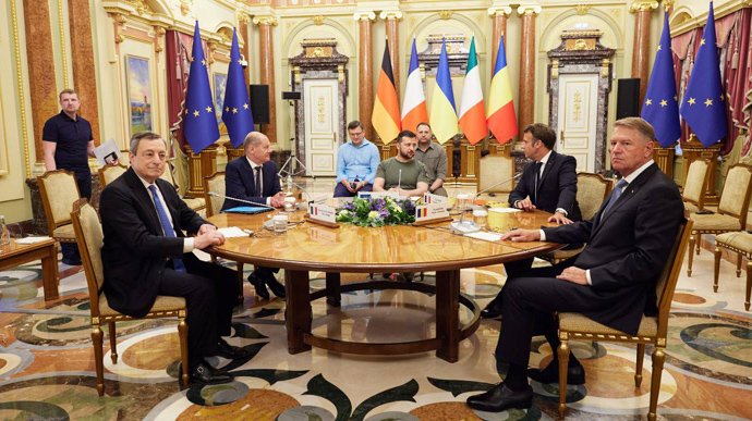 «Після зустрічі з Володимиром Зеленським в президентському палаці в четвер глави держав Німеччини, Італії, Румунії та Франції висловилися за «негайний» статус кандидата на членство в ЄС для України», – йдеться у повідомленні.