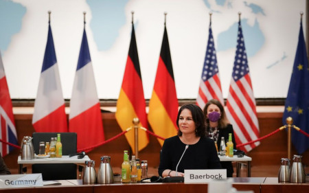 Бербок вкрай критично ставиться до заяви Росії про скорочення бойових дій під Києвом і Черніговом та виведення військ.