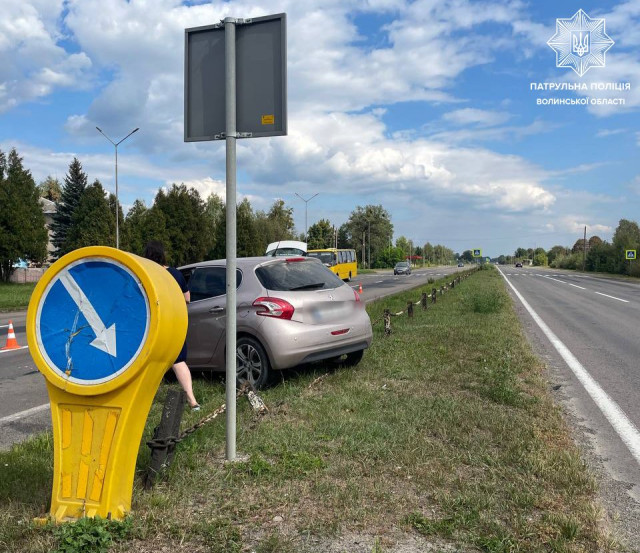 У Звірові Луцького району п'яна водійка влетіла в дорожню огорожу, яка розділяє смуги руху.