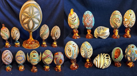 «Я вже давно цю колекцію почав, десь рік тому. Але були питання по здоров'ю, стало трохи легше і продовжив. Доклеював підставки бурштином. У мене жодного яйця немає однакового», – каже майстер.