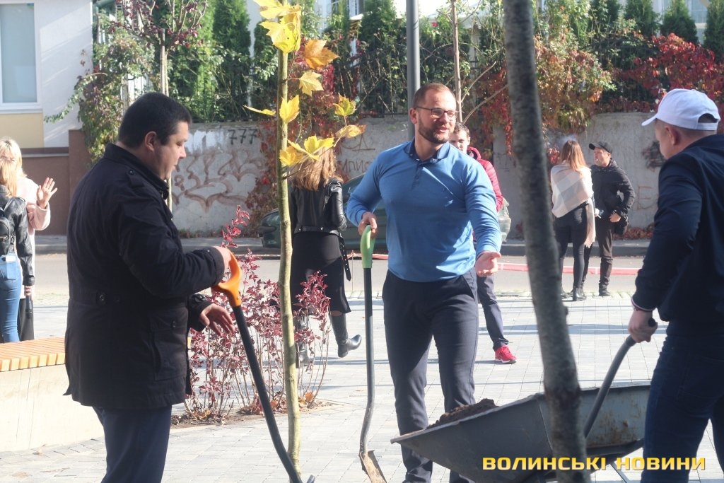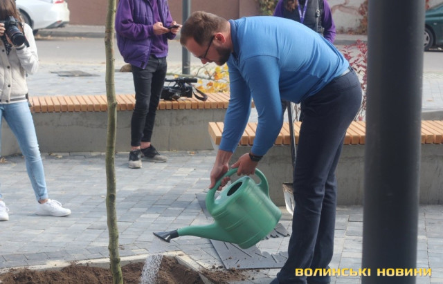Понад півтора десятка дерев висадили у нещодавно облаштованому сквері у центрі Луцька.