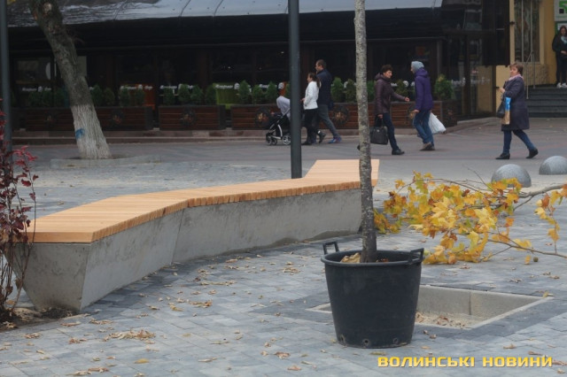 Сьогодні була, на малюнку було краще. Мало зелені. Можливо, коли підростуть кущі, вигляд зміниться. Або понаставляють великі кашпо з рослинами. В будь-якому випадку, це те, що називають "з великої хмари малий дощ".