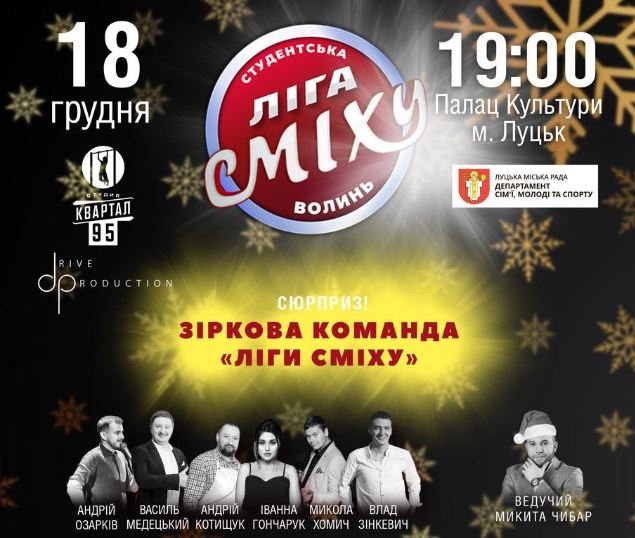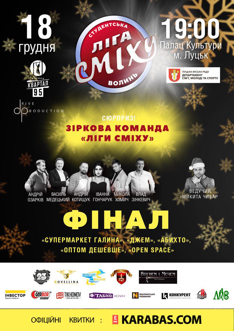 Фінал першого сезону сезон студентської «Ліги сміху Волинь» відбудеться 18 грудня о 19.00 у Палаці культури Луцька.