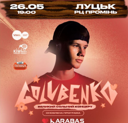 «Луцьк, зустрічай! Нова зірка української музичної сцени Golubenko і пісні, що звучать на концертах в унісон з цілим залом! Встигніть придбати кращі місця!» – запрошують організатори VINIL concert agency.