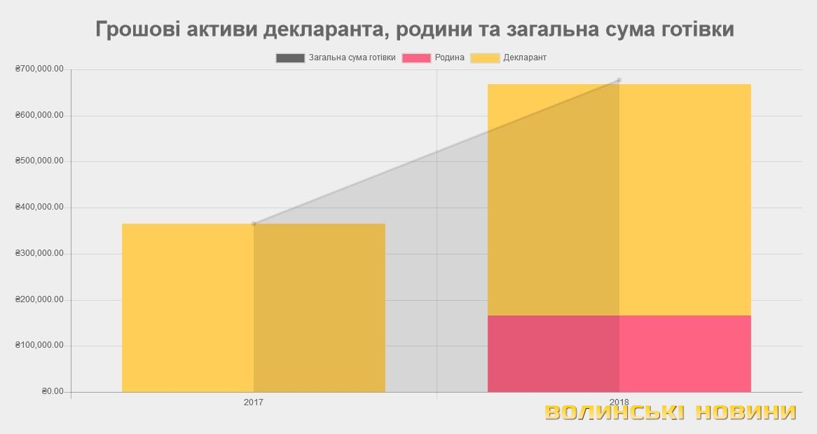 Зазначимо, що порівняно з 2017 роком дохід сім’ї зріс на 461 157 гривень. Так, річний дохід родини у 2017 році становив 558 769 гривень.Готівка