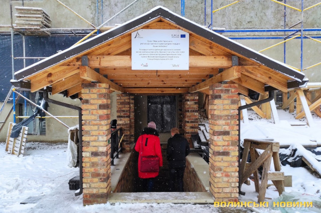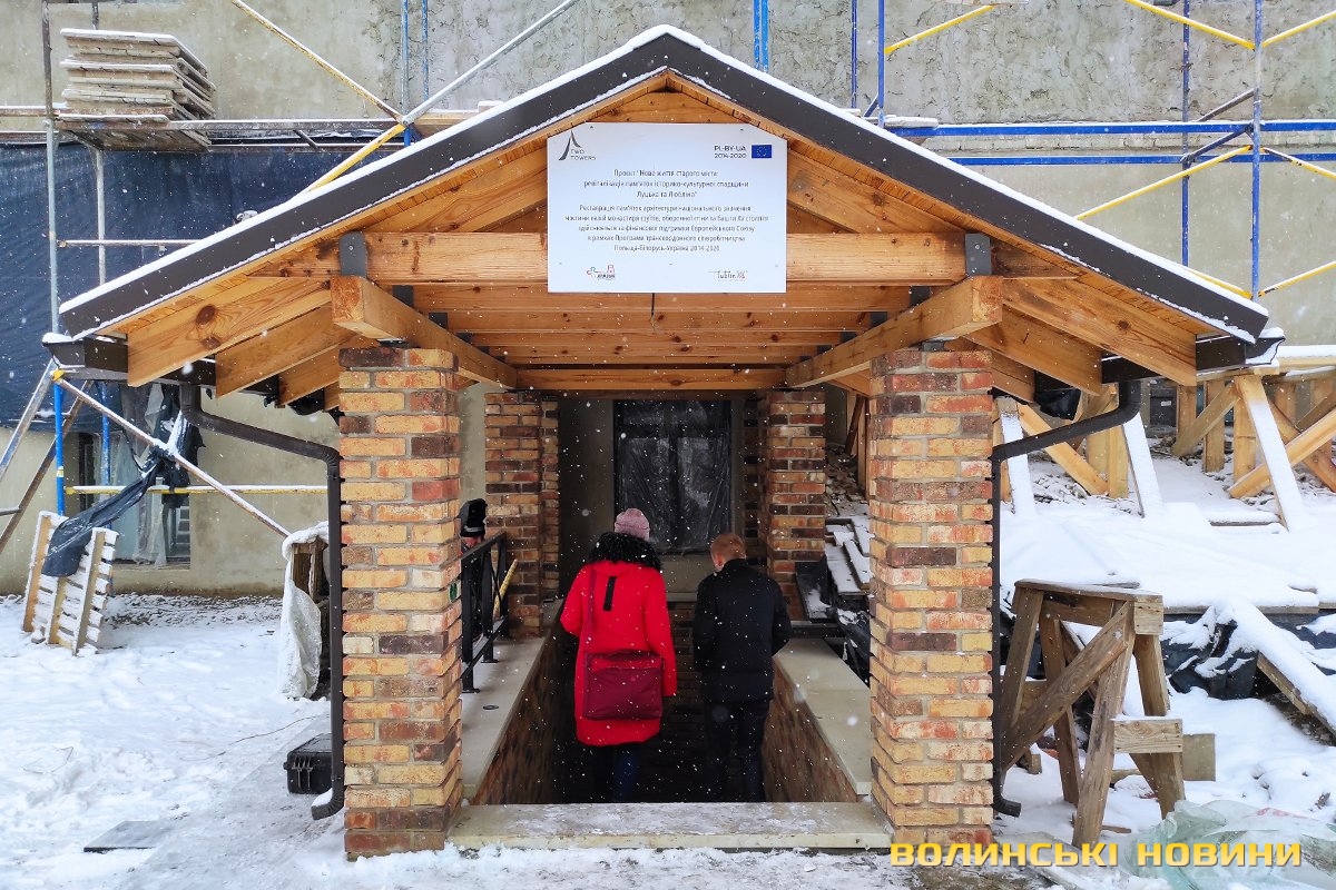 «Оця частина поставила під загрозу весь проєкт і була велика ймовірність його не реалізувати... Відповідно до проєкту, ми мали зайти в підвали окремим входом, а його не виявилося. Збудувати новий було неможливо, адже статус землі не дозволяє тут будь-яке будівництво. Абсолютно випадково на старих планах вдалося побачити, що тут був колись розташований вхід, який просто не зберігся, і нам вдалося довести, що це – відновлення зруйнованого входу, а не будівництво нового», – ділиться спогадами керівник проєкту.Центральний вхід у ці підвали все-таки сучасніший. Оздоблений уже сучасною цеглою, проте стилізованою під давні матеріали. Сама цегла – привезена з Данії, вона сформована вручну і їхала до Луцька близько п'яти місяців. Біля входу облаштовано санвузли (така вимога європейських грантів: для туристів потрібно облаштувати вигоди).