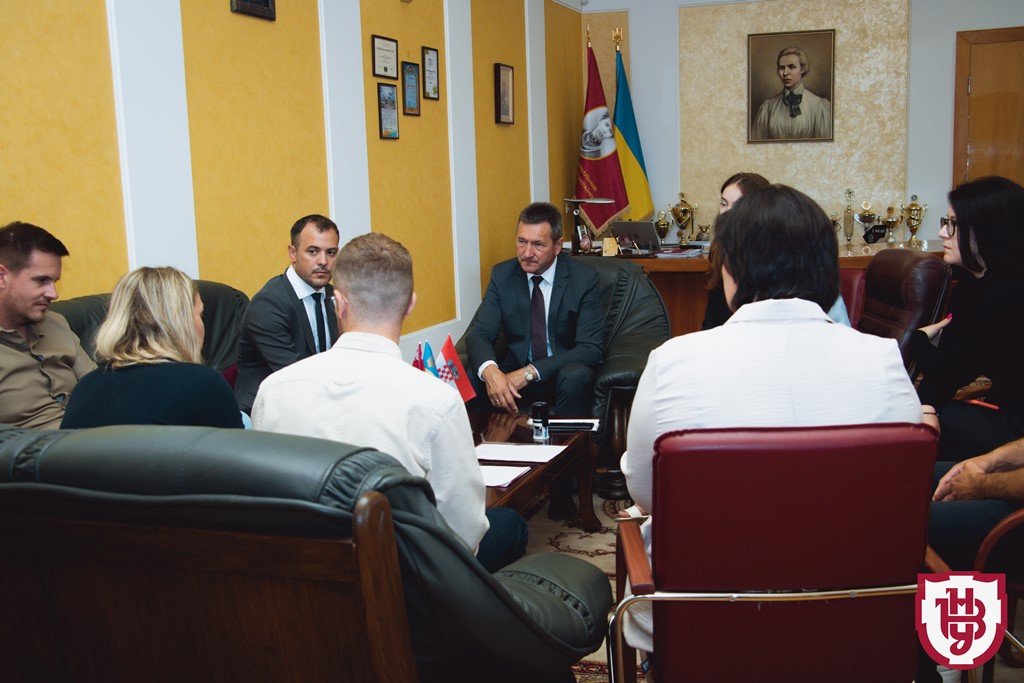 Делегація з Хорватії, представлена Любо Руньїчем й Аленом Лалічем із Шибенського університету прикладних наук та Майєю Цвітан Грубішин із Політехнічного університету імені Ніколи Тесли, зустрілася з ректором ВНУ імені Лесі Українки Анатолієм Цьосем, проректором з науково-педагогічної роботи та міжнародної співпраці Людмилою Єлісєєвою, проректором з навчально-виховної роботи та комунікації Наталією Благовірною, деканом юридичного факультету Антоном Демчуком, деканом факультету міжнародних відносин Антоніною Шуляк, а також фахівцями відділу міжнародних зв’язків.Читати ще: «Відкриємо докторську школу». Як ВНУ хоче використати досвід, отриманий у Кембриджі