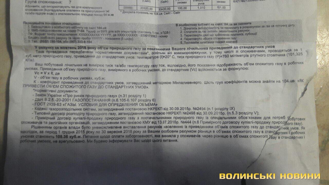 У рахунках за жовтень, які волиняни почали отримувати вже в листопаді, з'явились додаткові нарахування за приведення об'єму спожитого газу до стандартних умов. У розрахунках для населення це зроблено вперше, попри те, що для інших споживачів газу, зокрема для промислових підприємств, ця практика, відповідно до нормативних документів, застосовується ще з грудня 2015 року.