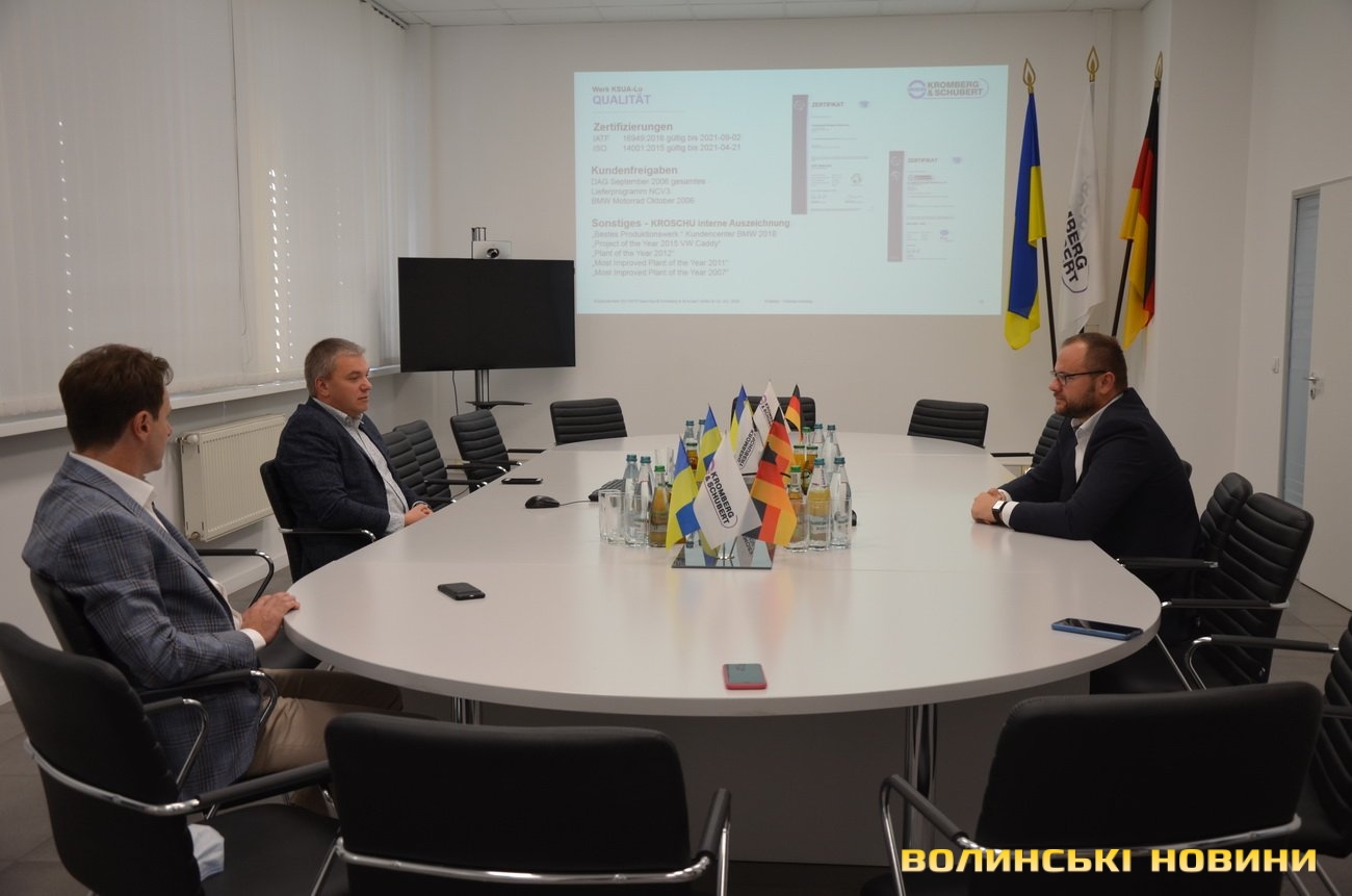 «Тобто об’єм замовлень і, відповідно, обсяг виробництва будуть збільшуватися, а ми, зі свого боку, будемо робити все можливе для того, щоб ці виробництва були зареєстровані саме в Луцьку. Ми робитимемо все для того, щоб збільшувати привабливість нашого міста для відкриття нових виробничих потужностей, – анонсував радник міського голови. – Безумовно, компанія «Кромберг енд Шуберт» відома в Європі, на неї орієнтується чимало інших європейських виробників, тому позитивна історія наших взаємовідносин із цим підприємством стане добрим сигналом для інших компаній, які будуть розглядати Волинську область, Луцьк зокрема, як потенційне місце для розміщення своїх виробничих потужностей. Ми робитимемо все для того, аби в нас був сприятливий інвестиційний клімат, аби в нас відкривалися, реєструвалися нові підприємства – як українські, так і закордонні».Водночас Ігор Поліщук зауважив, що інвестиційну привабливість міста збільшує наявність аеропорту, розміщеного поблизу.