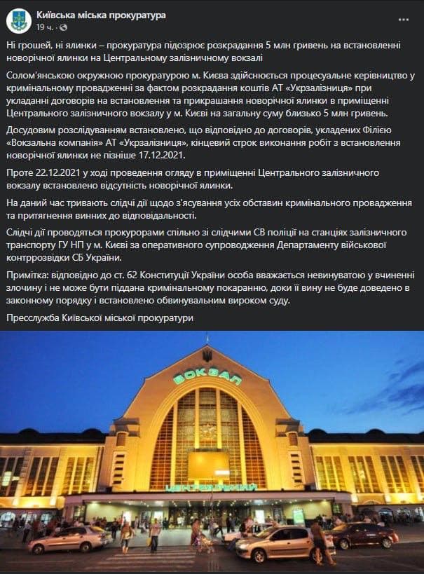Про перше диво повідомила прокуратура. Там виявили, що на вокзалі випарувалася новорічна ялинка, на яку за документами витратили 5 мільйонів гривень і яка мала бути встановлена ще до 17 грудня.