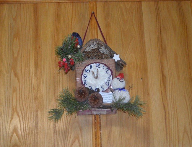 – Я виготовив настінний годинник з природних матеріалів, – розповідає переможець. – Для цього мені знадобилися кора дерев, шишки ялинки, інші підручні матеріали. Тут є навіть стрілки…