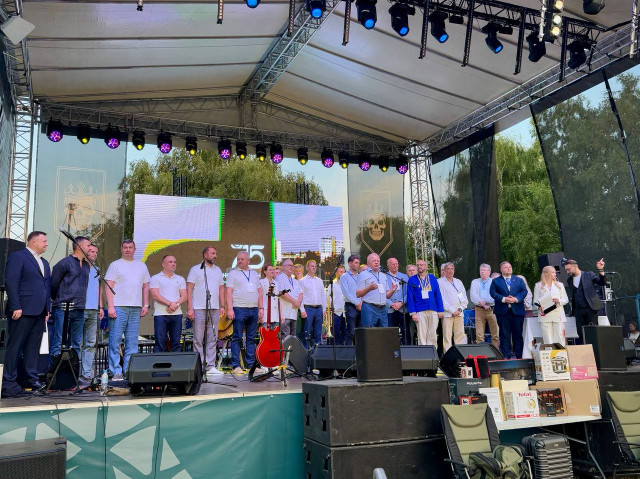 Цьогоріч вперше від початку великої війни до Нововолинська з дружнім візитом прибули 7 іноземних делегацій: литовських міст Кретинга на чолі з мером Антанасом Кальніусом та Кельме на чолі з міським головою Ільдефонсенсом Петкявічюсом, польського Білгорая на чолі із заступником бурмістра Яцеком Піскорським, гміни Ярачево (Польща) на чолі з бурмістром Бартошем Банашаком, а такожд Надзвичайний і Повноважний Посол Бельгії в Україні Люк Якобс, представники міжнародної організації «Ротарі», волонтери з німецьких міст Обертсгаузен і Зелігенштадт. З нагоди 25-річчя партнерства Нововолинська з литовським містом Кельме очільники муніципалітетів перепідписали Угоду та дали старт новим та ще міцнішим взаєминам.Під час урочистостей відбулося нагородження військовослужбовців та мешканців громади, які своєю працею й відданістю зробили вагомий внесок у розвиток міста. За мужність, професіоналізм, героїчну службу та незламну відвагу у захисті України міський голова Борис Карпус вручив Подяки захисникам. Відзнаку «Почесний громадянин Нововолинської міської територіальної громади» посмертно присвоєно Заслуженому лікарю України Володимиру Середюку. Відзнаками «За заслуги перед містом» очільник громади нагородив ветеранів, представників бізнесу, культурних діячів, музикантів, спортсменів та працівників комунальних служб.У своєму виступі Борис Карпус подякував захисникам, які дарують можливість мирно жити й працювати. Він також висловив вдячність усім, хто розвиває Нововолинськ, робить його сучасним і комфортним для життя.Голова обласної ради Григорій Недопад у своєму вітальному слові наголосив на важливості шахтарської праці, відзначив розвиток міжнародних партнерських зв’язків міста та його поступ вперед. «Попереду ще багато років розвитку та процвітання. Я переконаний, що після цих двох цифр з’явиться ще й нулик, але це вже будуть нові покоління українців, свободу і незалежність яких боронять сьогодні наші захисники. Зичу кожному мешканцю славного Нововолинська та керівництву міста натхнення на нові звершення заради розбудови молодого і перспективного шахтарського міста», - підкреслив Григорій Недопад.За сумлінну працю, вагомий особистий внесок у розвиток вугільної промисловості та з нагоди відзначення 75-річчя міста Нововолинська і Дня шахтаря, подяки голови обласної ради оголошено: начальниці відділу планування, економічного аналізу, трудових відносин шахти № 9 «Нововолинська» Наталії Ковтун, машиністці підіймальних машин дирекції по будівництву об’єктів Людмилі Майбороді, першому заступнику генерального директора ДП «Волиньвугілля» Тіграну Месропяну та провідному бухгалтеру шахти «Бужанська» Галині Тодераш. Подяками Григорій Недопад також відзначив двох освітян громади, зокрема: фахівчиню Нововолинського інклюзивно-ресурсного центру Людмилу Шинкарук-Корзун та директора Грядівського ліцею Нововолинської міської ради Володимира Томчука.До ювілею міста приурочили культурні та спортивні події, а також акції на підтримку військовополонених та зниклих безвісти захисників. Біля міського озера було розгорнуто ветеранський простір, де працювали родини воїнів, фахівці з ветеранського супроводу та працівники територіального центру. Усіх охочих пригощали кулішем за донат. Адже під час усіх заходів тр