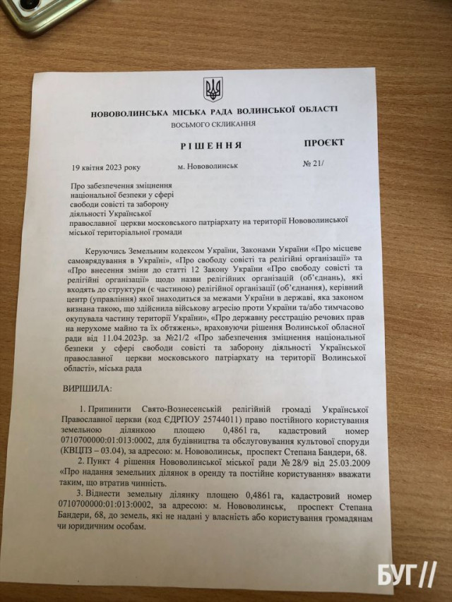 19 квітня на сесії Нововолинської міської ради заборонили діяльність УПЦ МП на території громади. Рішення депутати прийняли одноголосно.