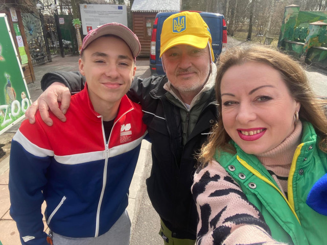 Німецький ветеринар Крістіан Ергензінгер (на фото – в центрі) привіз допомогу Луцькому та Черкаському зоопаркам, аби ті мали хороший запас продуктів на випадок екстрених ситуацій. Він сам вирушив у подорож туди, де абсолютно нікого не знає, оскільки вирішив не стояти осторонь ситуації, яка склалася в Україні.