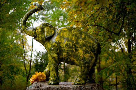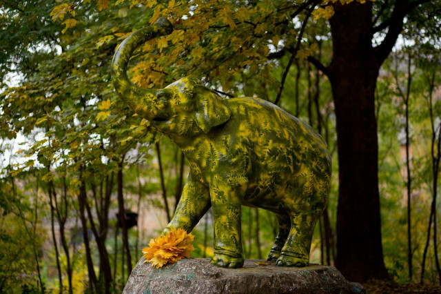 Саме тому я вирішила використовувати слоника і цей колір – він зараз дуже зливається з деревами та парком. Моя ідея була в тому, щоб привернути увагу до саду.