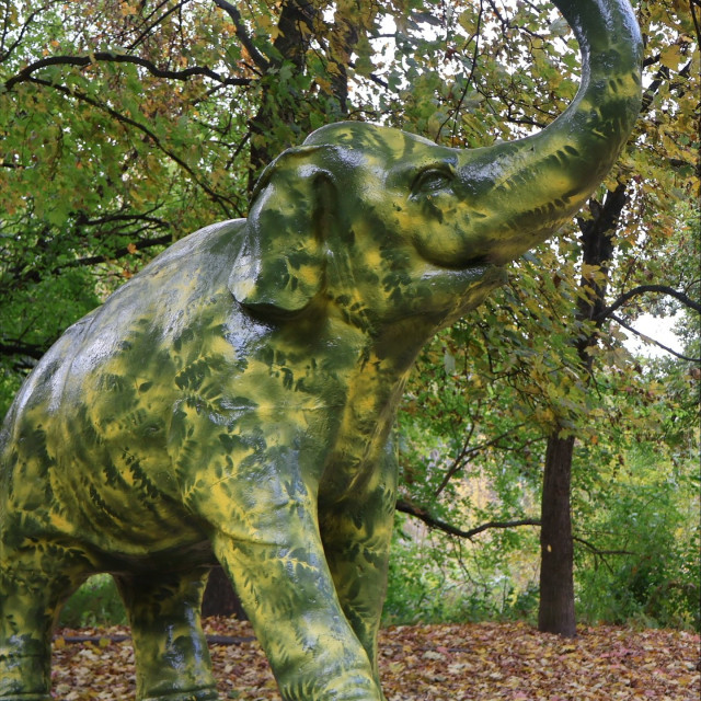 Спочатку це була фонтанна композиція «Слон і Моська», створена за мотивами байки Івана Крилова. Колись поруч із масивною фігурою слона стояла маленька собачка – та сама Моська, яка у байці «гавкає на Слона». Та з часом вона зникла: чи то була демонтована, чи просто розсипалася від часу – нині ніхто достеменно не знає.