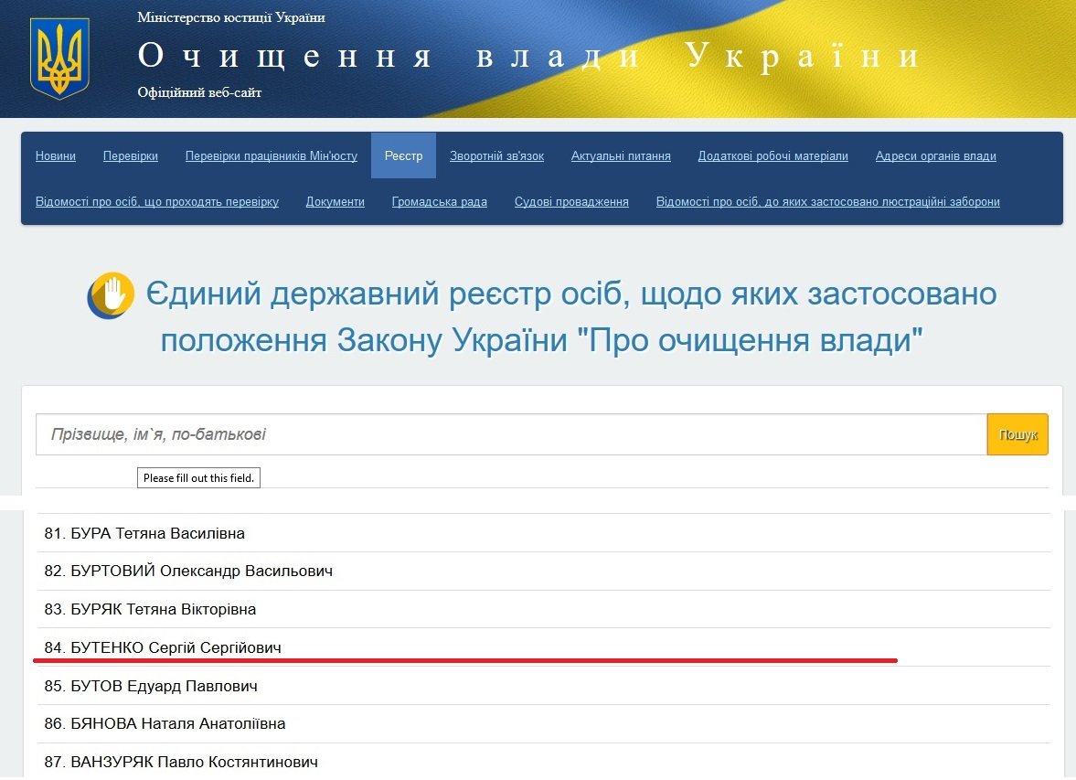 Так, у листі керівництву Київської митниці Кривіцький просить виконати рішення суду про відновлення в правах колишнього заступника голови столичної митниці Сергія Бутенка:Сергій Бутенко обіймав посаду до початку процесу люстрації. В офіційному реєстрі громадян, щодо яких був застосований закон «Про очищення влади», він займає 84 позицію:Скріншот: https://lustration.minjust.gov.ua/register