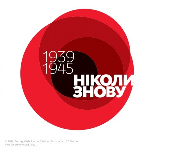 Біля символу логотип містить гасло "Ніколи знову", адже саме в наших руках не допустити повторення жахіть війни, та роки воєнного лихоліття: 1939—1945.
