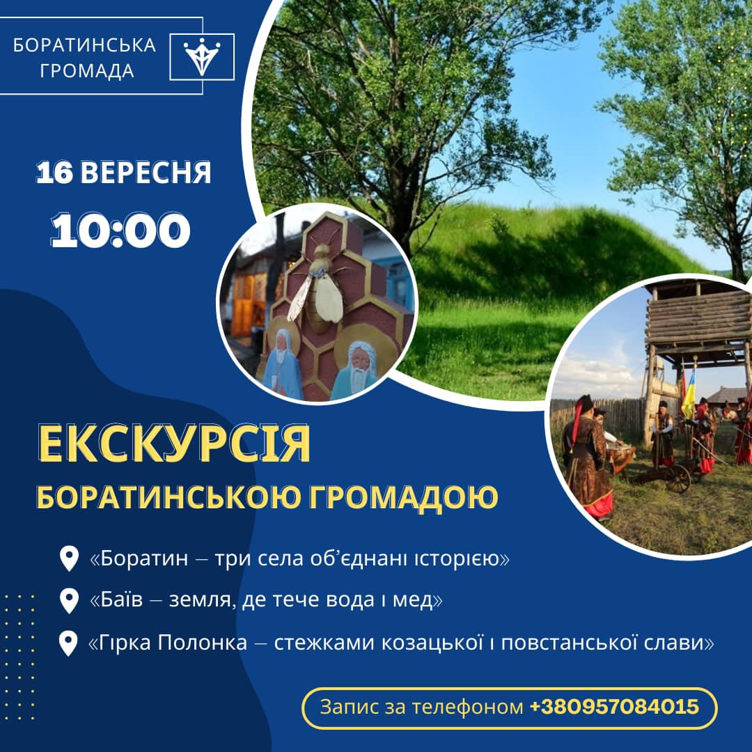 «Пропонуємо перенестися на кілька століть назад та поринути у вир історії рідного краю, завітавши на екскурсію Боратинською громадою. Запрошуємо жителів громади, гостей та всіх охочих апробувати новий туристичний маршрут, що пролягає територією трьох сіл», – йдеться у повідомленні громади.