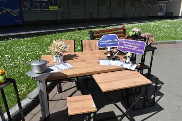 Крім того, заклади профтехосвіти представили широкий асортимент товарів виставкових експозицій: різноманітні вироби з металу, дерева та лози, гойдалки, дачні набори, садовий інвентар, швейні та столярні вироби, с/г продукція, домашня кондитерка тощо.