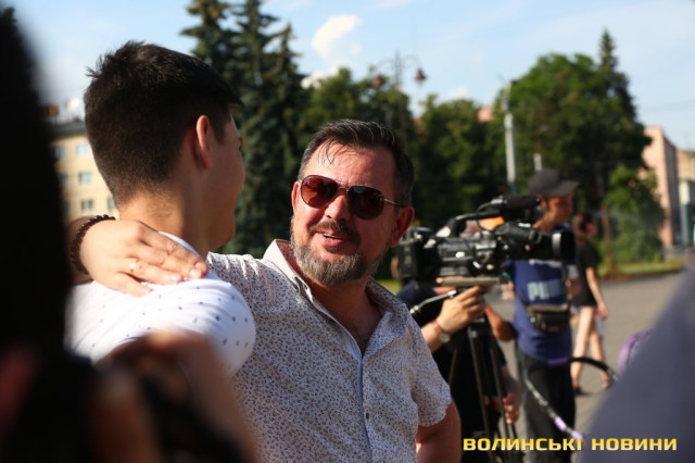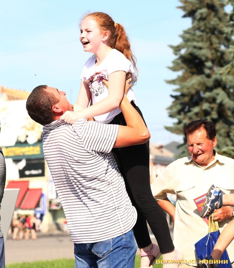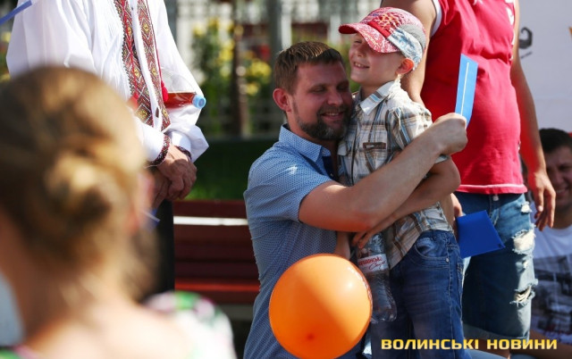 Обійми, селфі та подарунки: у центрі Луцька влаштували флешмоб до Дня батька