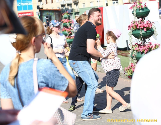 Флешмоб «Батько 24/7» організували 16 червня на Театральному майдані у Луцьку.
