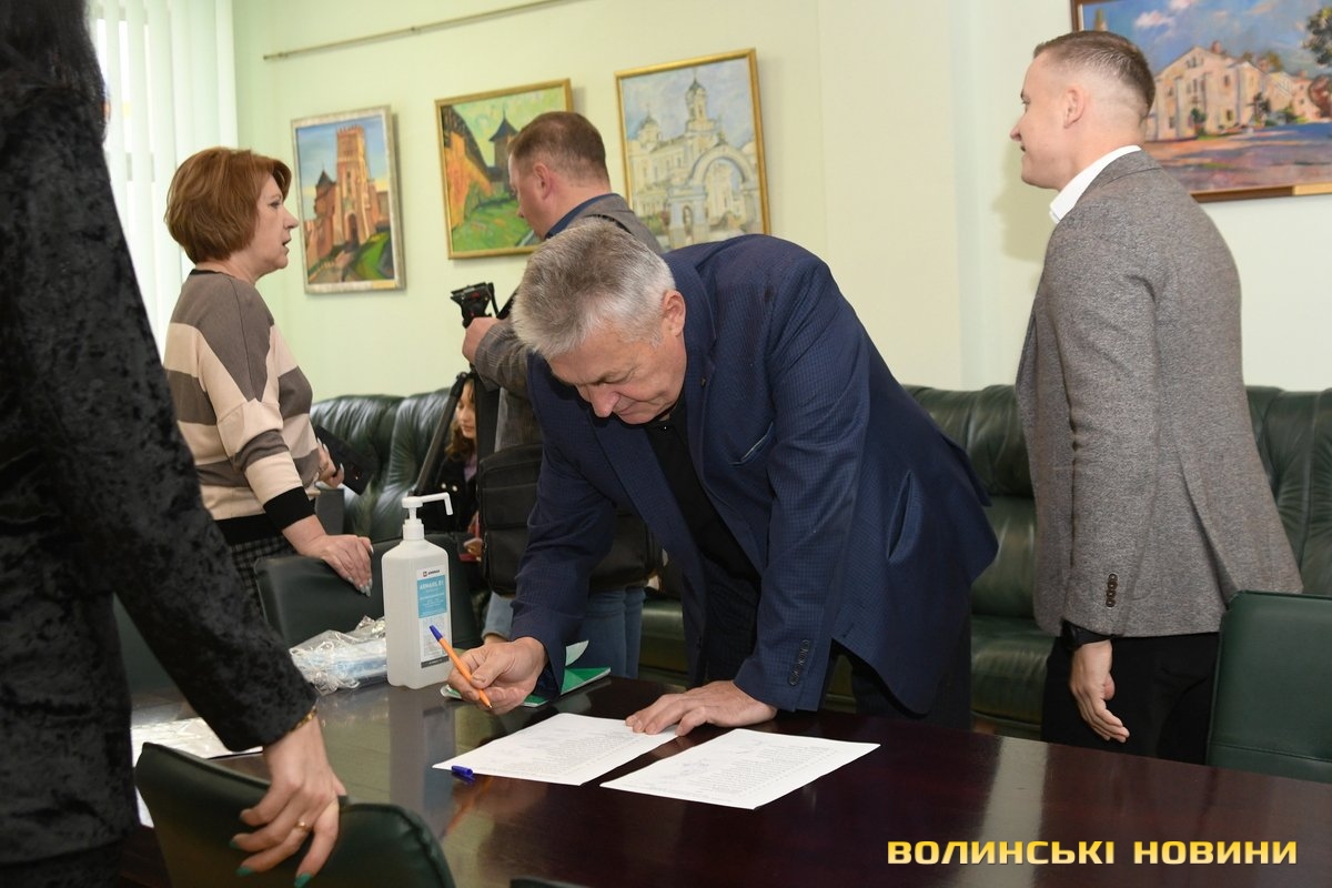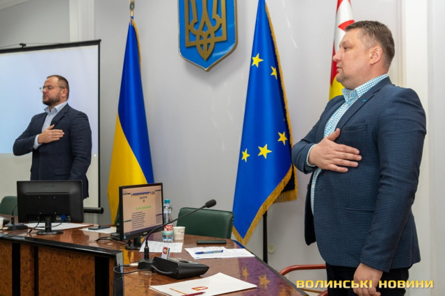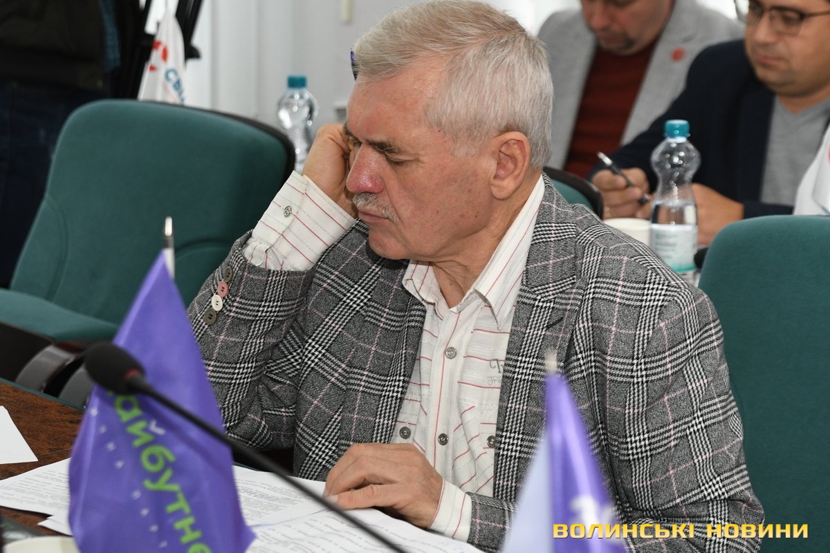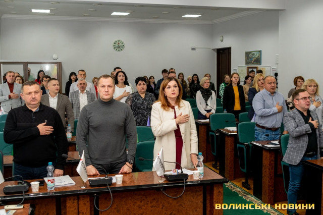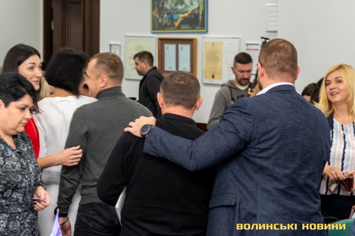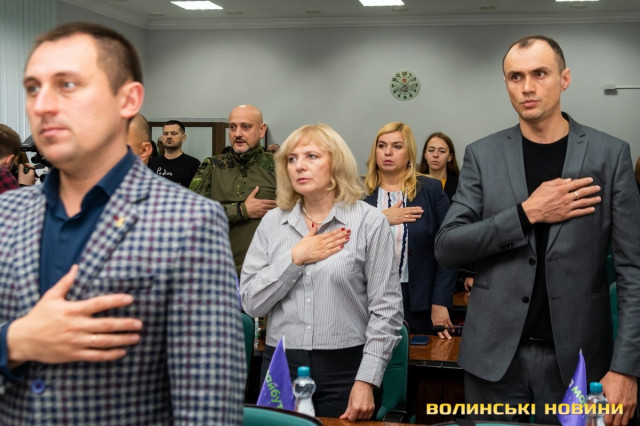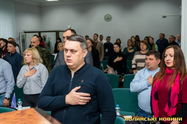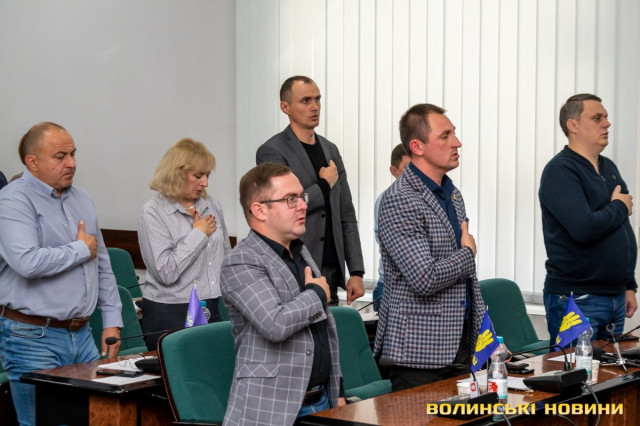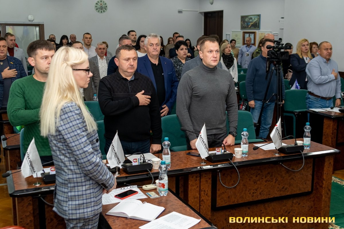 9:30 ранку. У холі перед сесійною залою – гамірно. Тут зібралися обранці громади, які понад пів року засідали у режимі онлайн і які скучили за живим спілкуванням. Депутати жартують, обіймаються і по-дружньому ляскають один одного по плечі.10:00. Традиційно засідання сесії розпочалось із спільного виконання Гімну України.Опісля Луцький міський голова Ігор Поліщук оголосив хвилину мовчання у пам’ять про загиблих військових Анатолія Панасюка та Олександра Сака. Так, сьогодні в кафедральному соборі Святої Трійці мешканці громади попрощалися ще з двома Героями, які віддали своє життя у війні із загарбницькою росією.