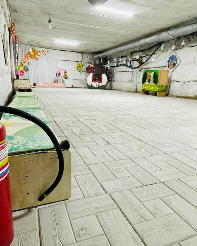 Для комфорту діток в укритті встановлені біотуалети, декілька ліжок, парти, лавки. Облаштовано ігрові зони. Працівники закладу підготували запас води та контейнер для їжі.