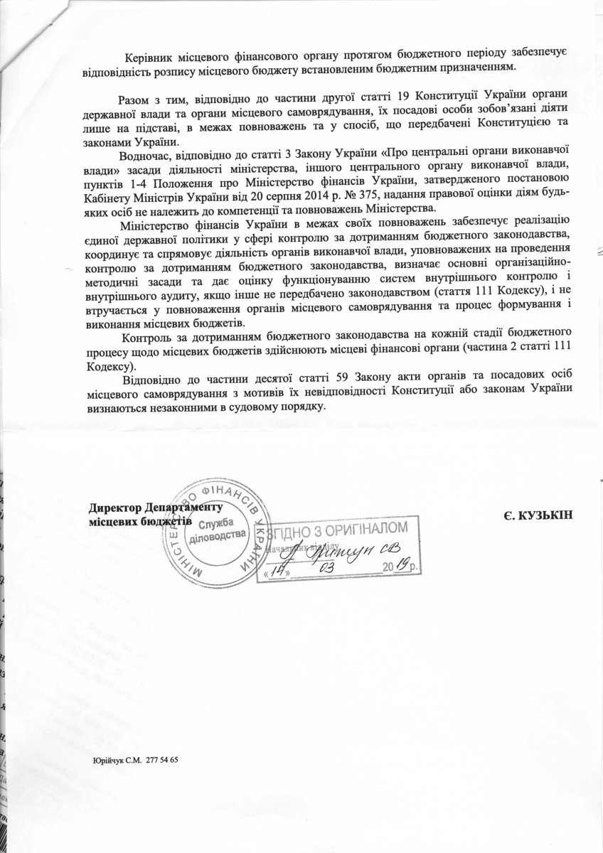 На Савченка і керівника фінансового департаменту Волинської ОДА заводять кримінальні справи, їх дії розслідують правоохоронці. Савченка і Никитюка вимагають відсторонити від займаних посад, згодом на Никитюка подають до суду через протиправну бездіяльність. Головний фінансист, вочевидь, розуміє що йому загрожує в разі виконання незаконного доручення голови ОДА, а тому починає готувати бюджетний розпис.