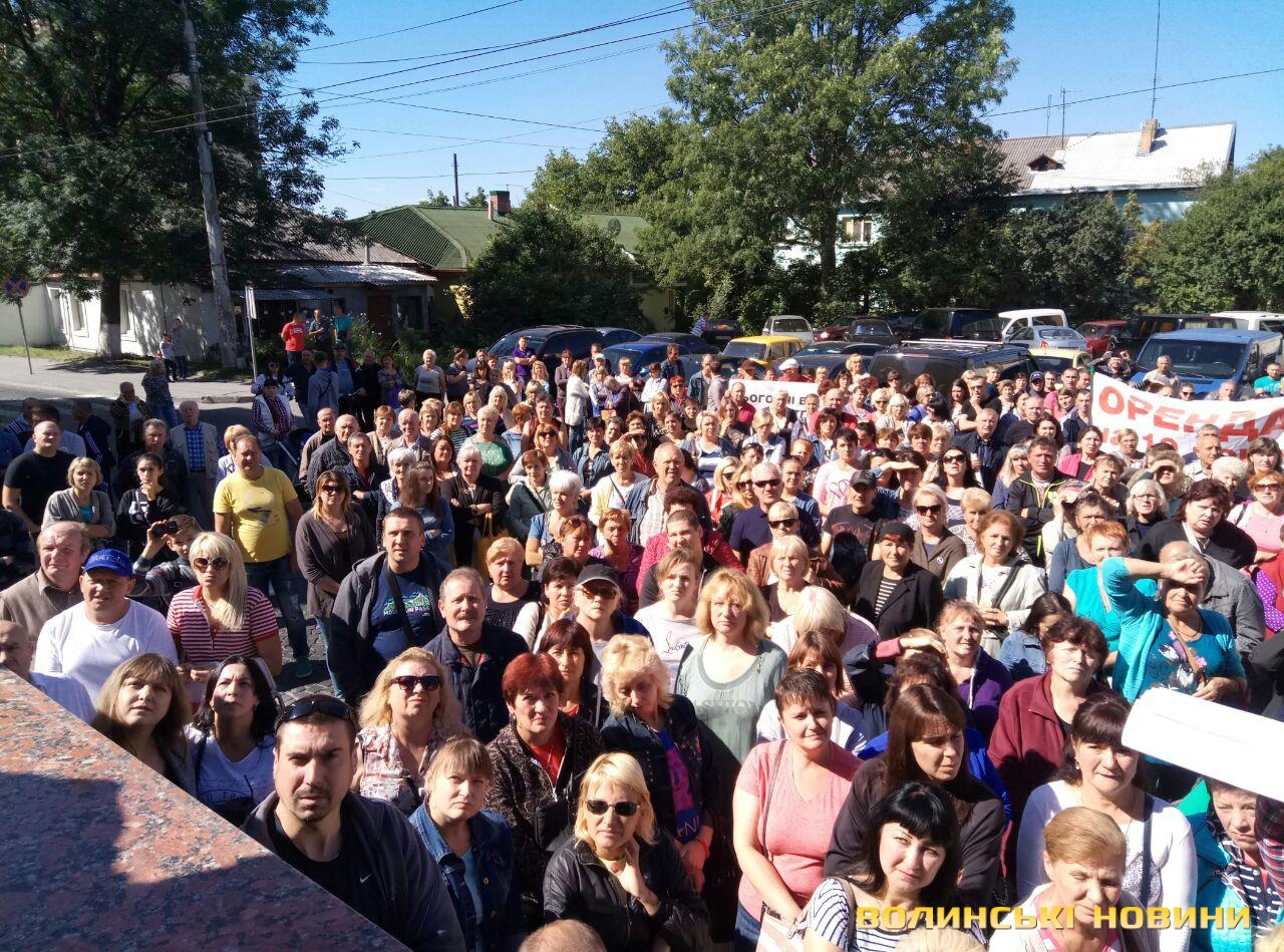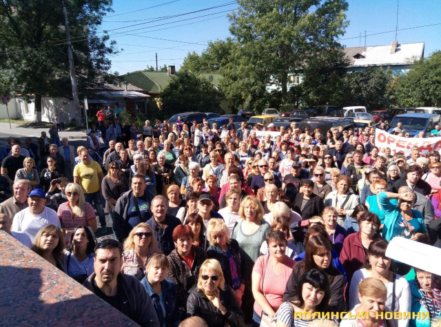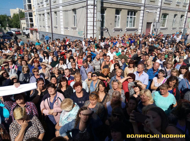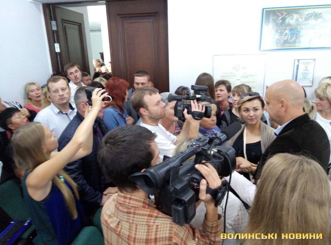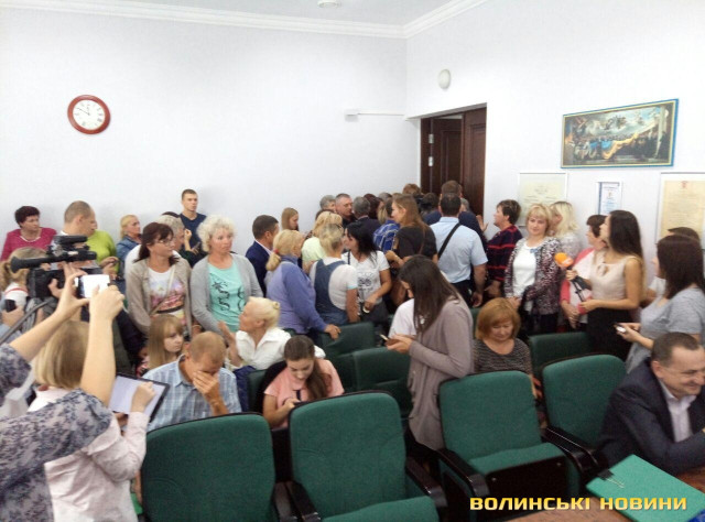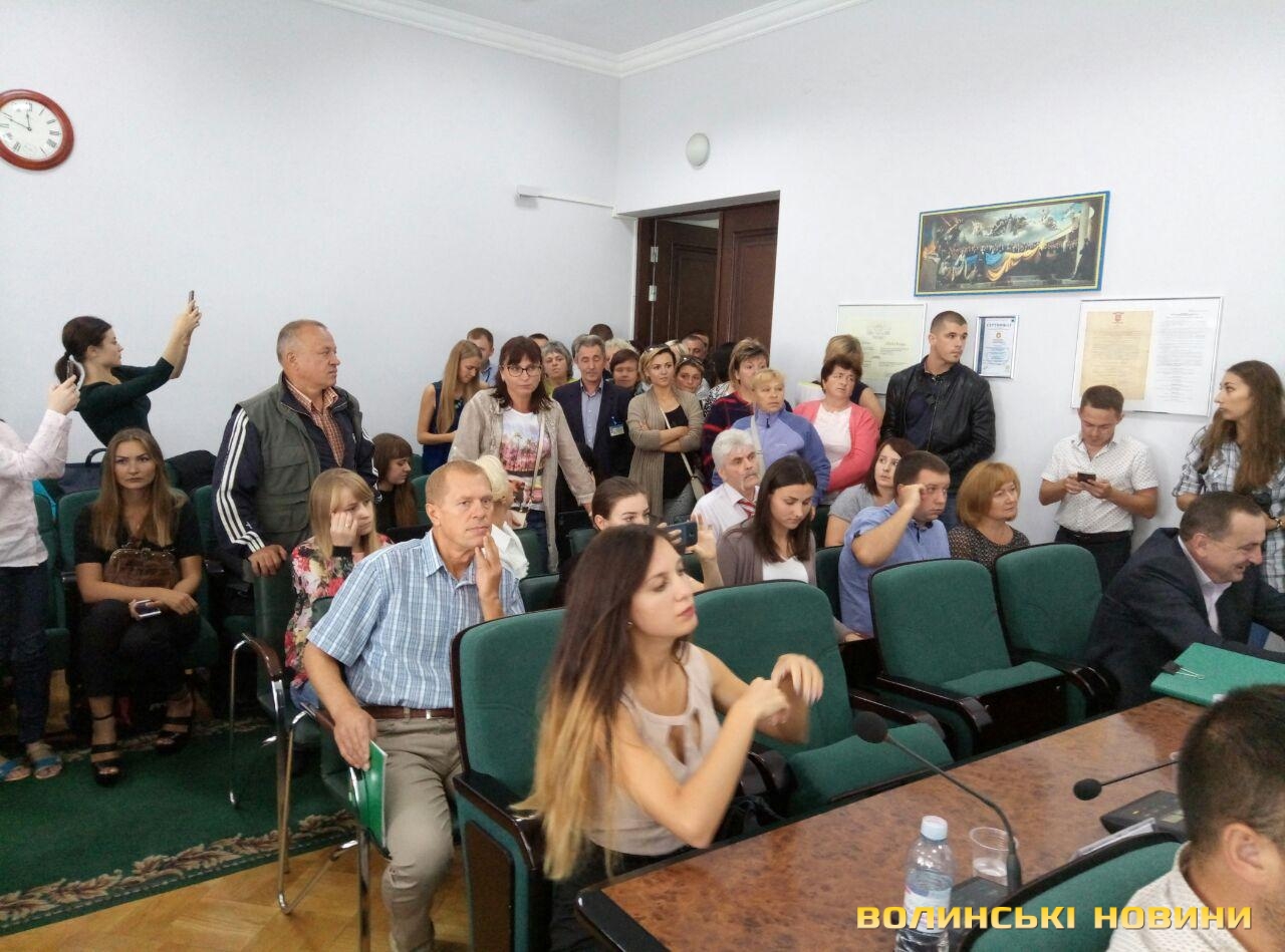 За станом на 11:50 підприємці Центрального ринку перекрили депутатам міськради вихід із зали засідань. Вони невдоволені рішенням щодо відмову ВОЛИНСЬКІЙ ОБЛСПОЖИВСПІЛЦІ у поновленні договору оренди землі для обслуговування ринку «Центральний» на вулиці Глушець, 1 (площею 0,5904 га).