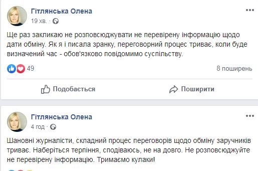 Речниця СБУ Олена Гітлянська на своїй сторінці у фейсбук написала:Натомість, «Радіо Свобода» повідомляє, що обмін полоненими між Україною та Росією відкладається до наступного тижня. Український адвокат кількох громадян Росії Валентин Рибін стверджує, що обмін відбудеться 3 вересня. Офіційно наразі невідомо, коли саме відбудеться обмін.