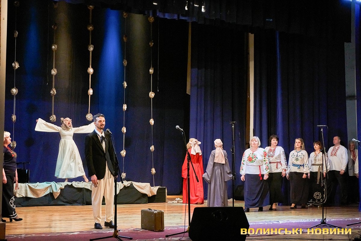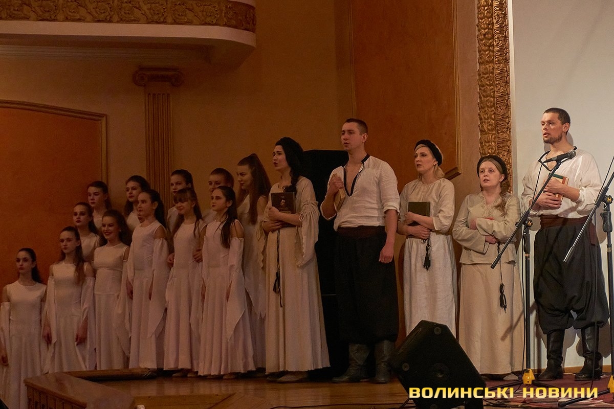 Яскраве мистецьке дійство пройшло у рамках міських заходів, приурочених до 206-ї річниці від дня народження великого поета. У Палаці культури міста Луцька лунали композиції на вірші Тараса Шевченка – оригінально, творчо, динамічно та інколи тужливо. І цьому сприяли не лише таланти майже 200 артистів КМЦ «Красне» – учасників колективів і окремих виконавців та режисерки мистецького заходу Руслани Порицької, для яких це був своєрідний творчий звіт.На сцені серед акторів був і сам Тарас Григорович. Він читав свої вірші, розмірковував та спостерігав за виконавцями. А ще страждав, переживав, боровся і творив! У образі великого поета постав луцький актор народного театру-студії «Гармидер» Дмитро Безвербний. Його талановита гра та почуття, виражені іншими учасниками проєкту, нікого не залишили байдужим.У театралізованому дійстві органічно переплелися акторська гра, музика, поезія та пісня. А ще – дивовижна хореографія, яка граційно балансувала на межі балету. Наприклад, інакшими словами, як захоплення годі й описати номер за участі тендітних дівчат у образі Русалоньки та її сестер-подруг.Потужним акордом став заключний номер концертної програми. Коли зі сцени, за участю усіх артистів пролунали символічні слова: «Обніміться ж, брати мої, молю вас, благаю!» – зал піднявся. І, справді, у такі миті переконуєшся у пророчому дарі великого Кобзаря – ніколи ще не були такими актуальними ці рядки, як у скрутні години для нашої держави. «Шануймося і будьмо єдиними у своїх думках, помислах, словах. Словах, разом з Тарасом Шевченком», – цим побажанням глядачам завершила творчий вечір директорка КМЦ «Красне» Алла Опейда.Мисткиня розповіла ІА «Волинські новини» про те, ким для неї особисто є постать великого Кобзаря. «Тарас Шевченко – символ нашої української нації. Патріот, який все життя відстоював високі ідеали незалежності і значення його просто неможливо переоцінити. Для кожного українця його слово має бути не лише вагомим, а дійсно пророчим. Сьогодні бачимо цю актуальність, тому варто згадувати поезію Кобзаря не лише під час мистецьких заходів», – каже Алла Олександрівна.Зауважує заслужена артистка України і те, що кожен повинен пробудити в собі щиру потребу розмовляти українською мовою. І тоді, органічно, прийде любов до віршованого слова наших корифеїв – і Шевченка, і Українки, і Франка. Лише так ми зможемо не лише відродити українську класику, але й прищепити до неї інтерес у молодого покоління.