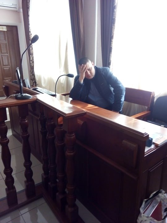 До залу увійшов другий адвокат Статочнюка – Сергій Полячук, узяв папірець, щось написав, склав і сунув у невеликий отвір прозорої камери, де сидів його клієнт. Записка призначалася саме йому а не Терлецькому – той сидів на іншому краю лави підсудних.